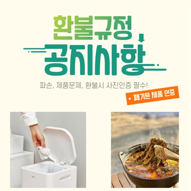 · 일부 상품에 대해서 교환/반품 정책이 위와 상이할 수 있습니다.