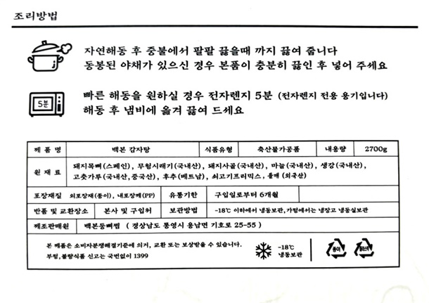 · CJ / 수령후 10일 이내 냉장보관
